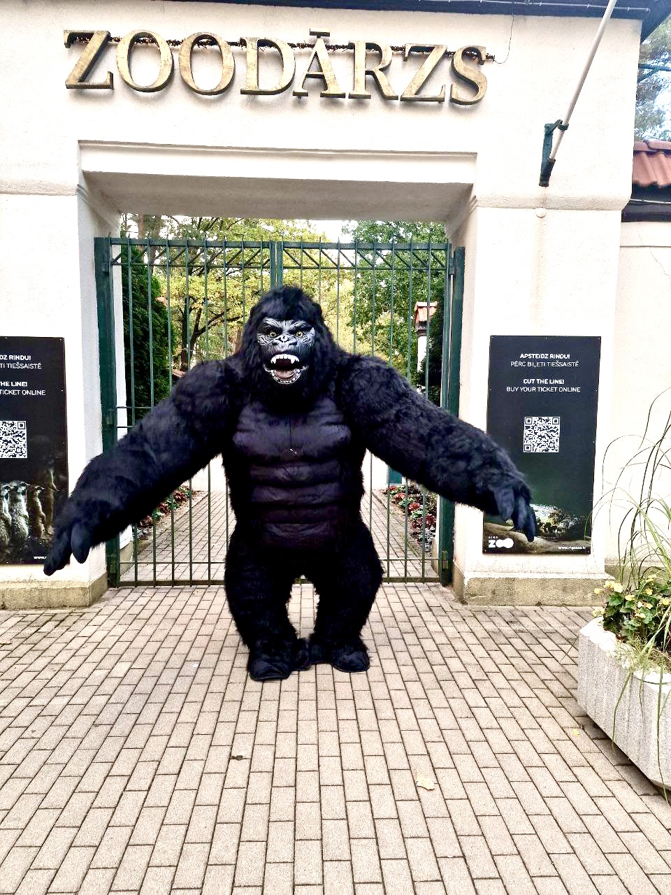 Mūsu 2.6-metrus Gorilla atnāks sveikt Jūs un Jūsu draugus jebkuros svētkos, dzimšanas dienā, vārdadiena, pasākumos, kāzās, jubilejā, kā arī sagaidītu lidostā. Gorilla pasākumā parādīties ar baloniņu dāvanu vai Jūs varat nodot jebkuru dāvanu un Gorilla to pasniegs gaviļniekam. Programmā iekļautas 3 deju dziesmas, kuras Jūs varat izvēlēties savai gaumei vai uzticēties mums. Gorilla uz bērnu dzimšanas dienu vai svētkiem pieaugušajiem izraisa vienkārši sajūsmas un apbrīnas vētru jau no pirmajām minūtēm. Turklāt Gorillai ļoti patīk fotografēties un noteikti ar Jums un Jūsu viesiem sarīkos fotosesiju. Tikšanās ar Gorillu būs visīstākā dāvana. Ja vēlies atcerēties emocijas pasūti Gorillu.